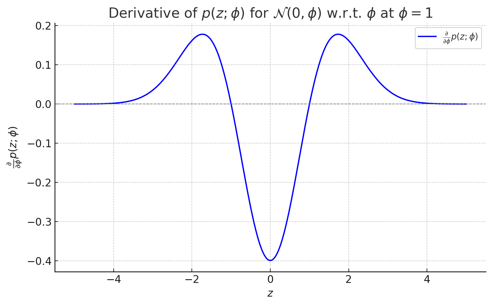 From Lemma 1, this is also the weighted score function: \( p(z; \phi) \pdv{\phi} \log p(z; \phi).