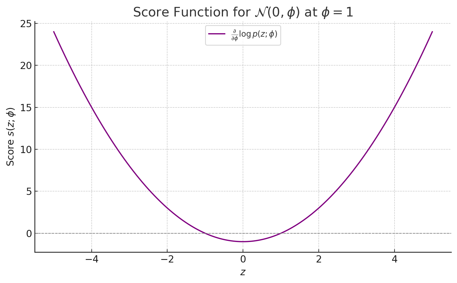 \[ \mathbb{E}_{z \sim p_{\theta}(z)}\left[\left( \pdv{\phi} \log p(z; \phi) \right)^2\right] \]Or written as:\[ \int_{Z} \dd{z} \; p(z; \theta) \left( \pdv{\phi} \log p(z; \phi) \right)^2 \]